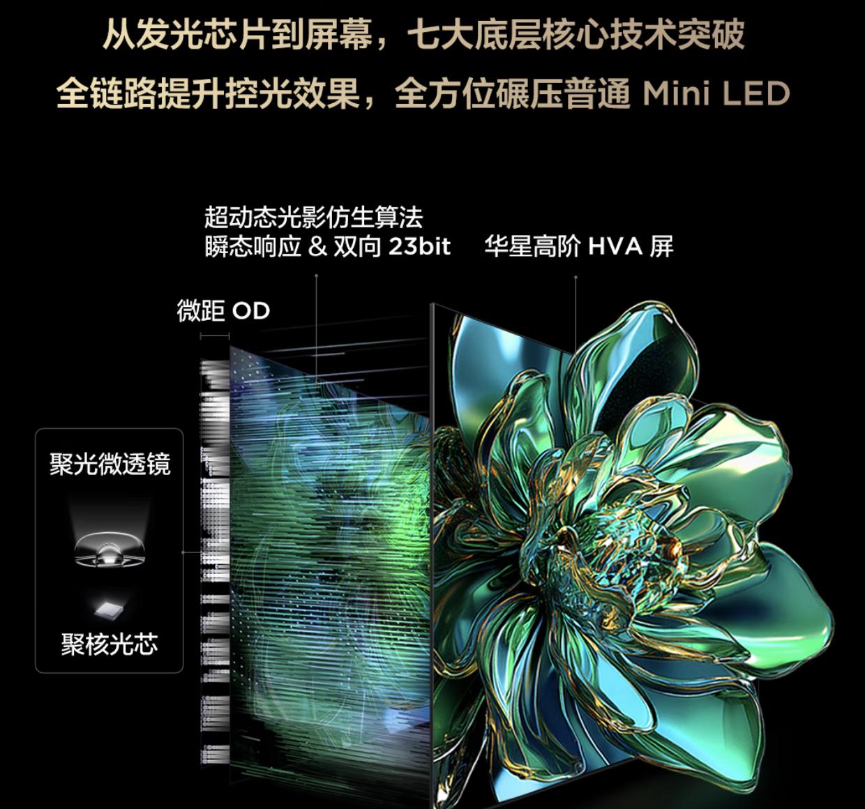 TCL选择另辟蹊径,它不是盲目加分区数量,而是从背光源到算法全链路优化,打造了系统级控光方案——万象分区技术。它的逻辑是:每一个分区都不仅仅是“亮”或“不亮”,而是通过更精细的调光和响应速度,做到“该亮的地方精准亮,该暗的地方压得住”。