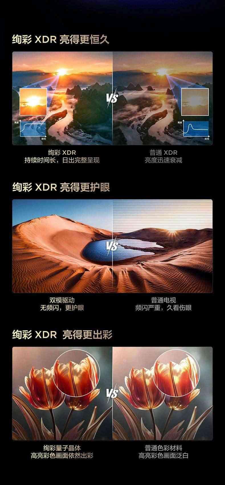 另一边的海信E5Q Pro在亮度上也有些区别对待,在100吋版本上给到的是XDR2800nits,但在85吋及以下的主力机型上,给到的却是XDR2200nits,再加上这些主力机型的AGLR屏幕对画质的约束,整机的画质体验也会受到影响