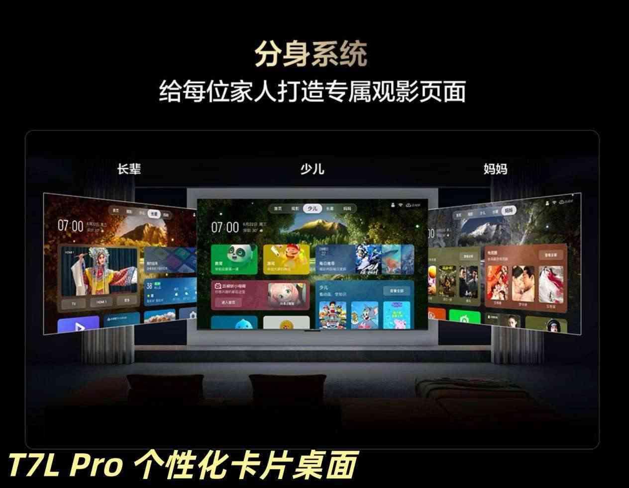 画质固然重要,但一台电视的真实体验是多维度的,比如说电视系统的上手性这块,在人手一部智能手机的当下,也显得尤为重要。TCL T7L Pro搭载的灵控系统3.0,不仅做到了无开机广告,还可以提供0.7秒的开机时间,同时4K UI界面支持300+的卡片自由排列,直追手机的使用体验,老人、小孩同样轻松上手。