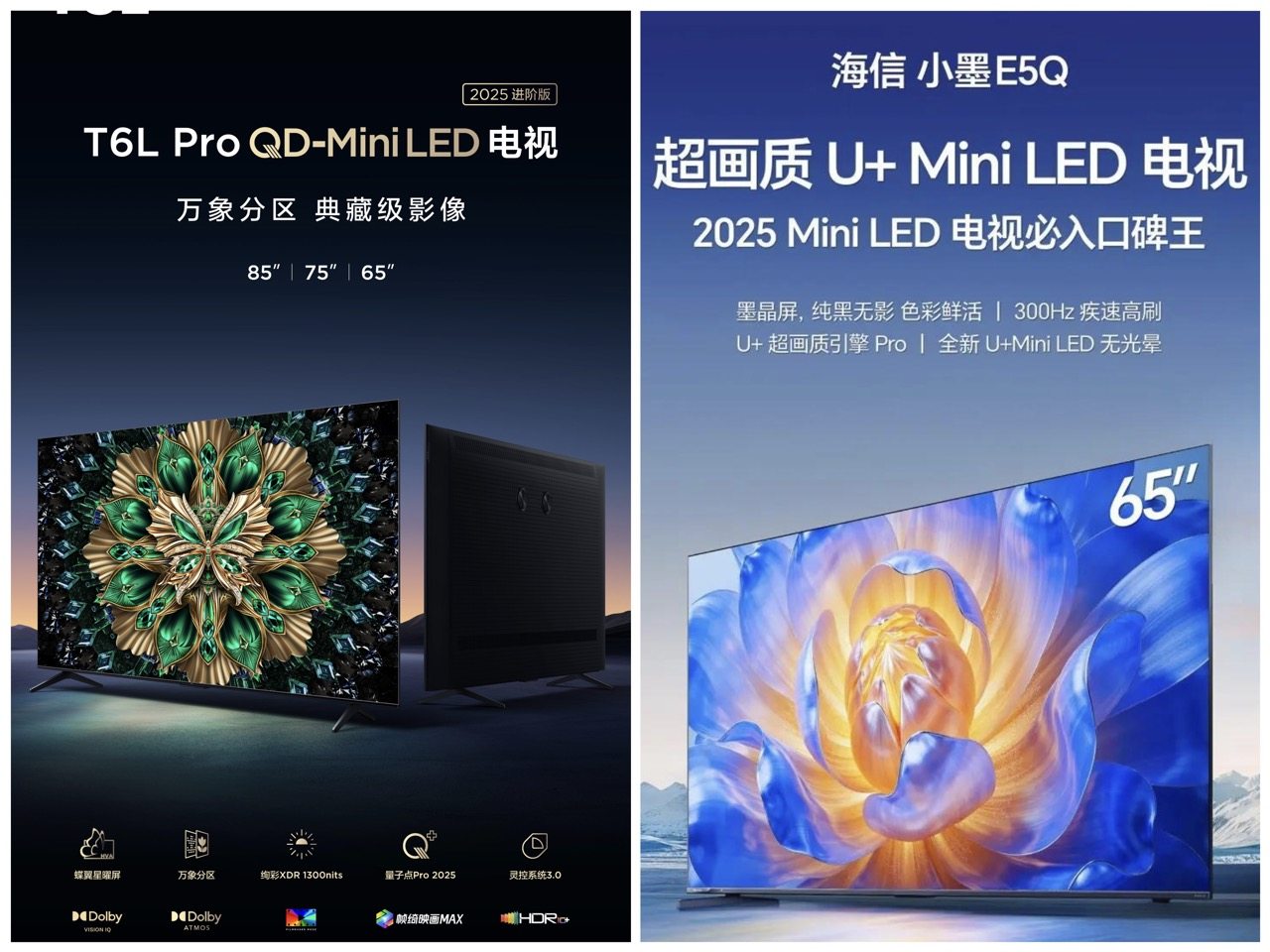 作为技术流博主,今天我们用市面上比较热门的2款Mini LED电视来拆解对比——TCL T6L Pro和海信小墨 E5Q,带你看懂哪些品牌在认真做技术,哪些话术在玩文字游戏。