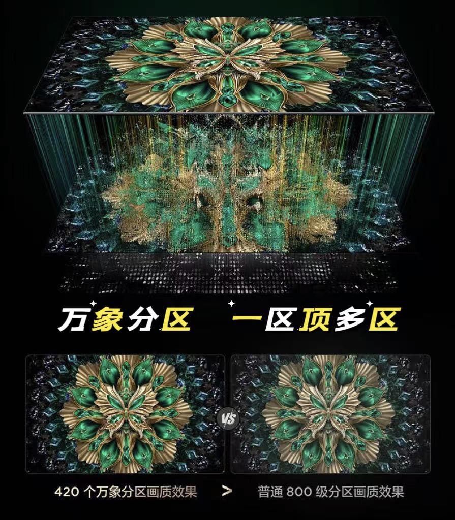 此外,在背光分区方面,很多人认为分区越多越好,其实不然,普通分区在数量达到一定程度后,就会出现控光能力不足的“边际递减效应”,对画质提升的帮助非常有限。而TCL T6L Pro 搭载的万象分区技术,它从背光到成像,通过对聚核光芯、超聚光微透镜、微距 OD 等 7 大环节的底层技术的全面升级,实现了“一区顶多区”的强大控光效果。以 85 吋的TCL T6L Pro为例,它拥有420个万象分区,控光表现甚至比一些配备 800 级普通分区的电视还要出色!这能让画面中的黑色更加深邃纯粹,暗场细节清晰可见。