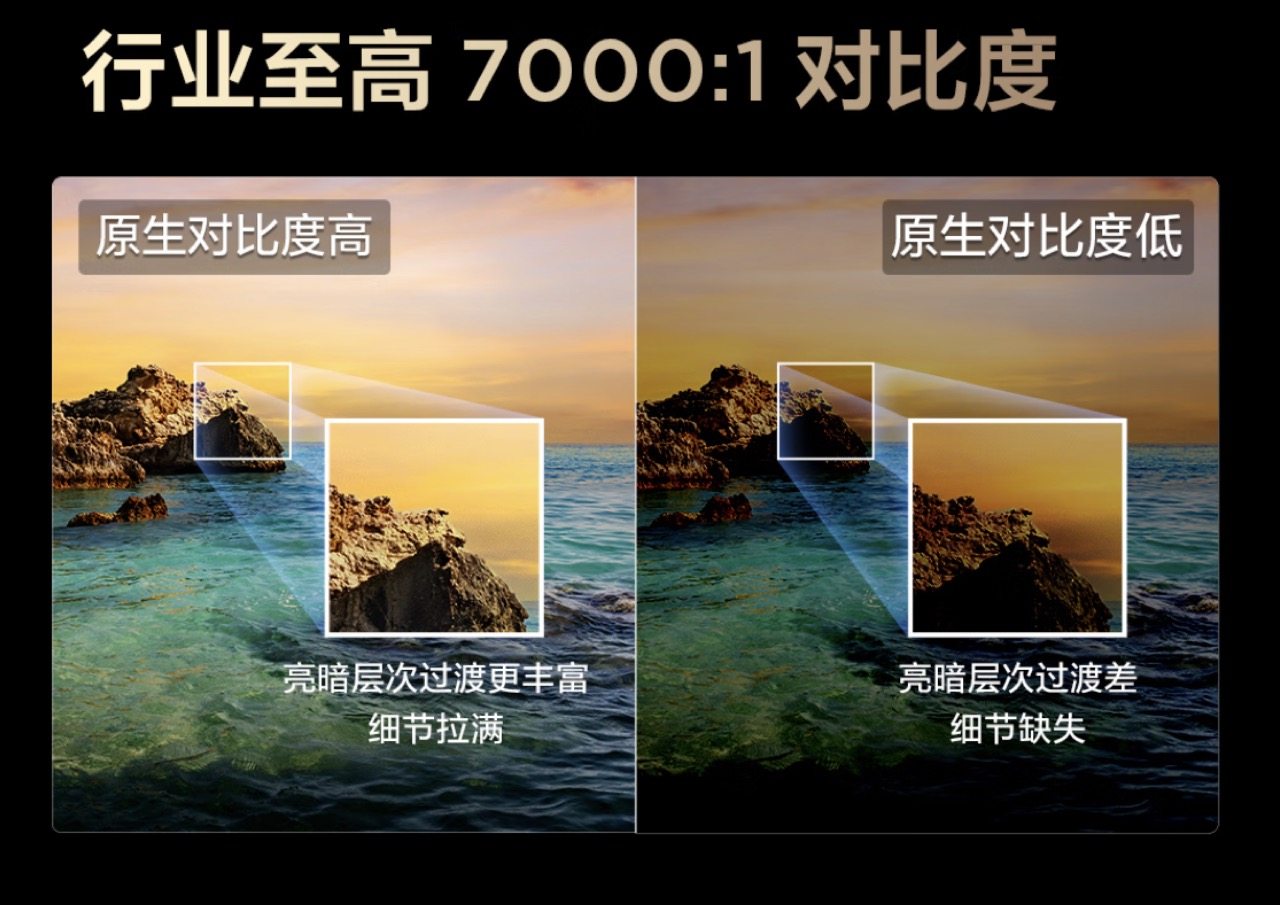 这块屏幕不光是名字听起来高大上,实力也很抗打,原生对比度高达7000:1,不是那种靠算法堆出来的“假高对比”,而是物理级别的。这个高对比度带来的好处就是,无论明暗场切换还是暗部细节表现,都特别清晰,像是一些科幻片、悬疑剧,暗场里的人物轮廓和细节都能看得一清二楚,再也不是一坨黑乎乎的影子。