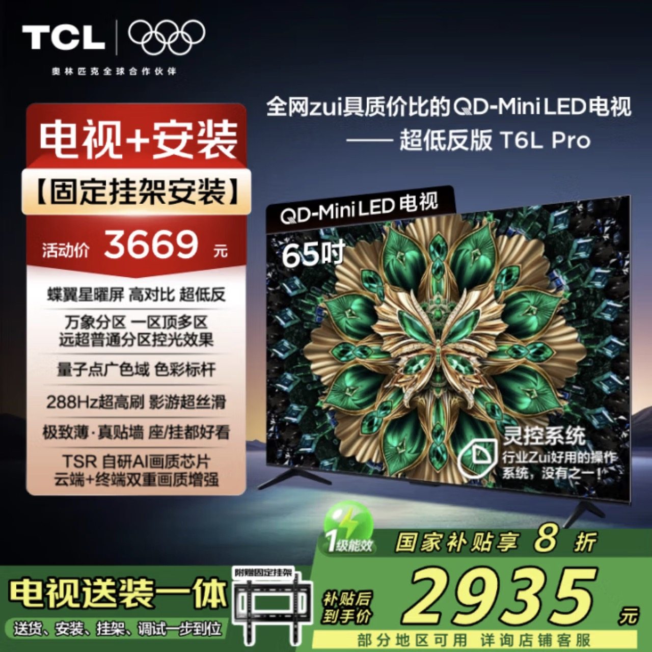 自从618预售以来,我基本每天都是熬夜在看攻略,对比各款产品参数,就是想买一台画质好的Mini LED电视。经过小半个月的拉锯战,最终在海量电视产品中,我锁定了TCL新出的T6L Pro,主要是价格真的很实在,65吋不到3千块,各方面配置还挺高,而且我看还是65吋电视销量榜第一名,这不妥妥的稳了嘛!今天来跟大家说说这款电视实力到底如何。
