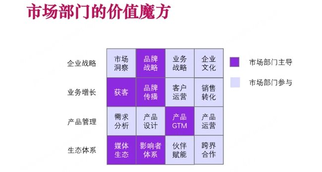 彭罕妮:从道的角度,我觉得现在市场部门的价值可以从四个角度体现: