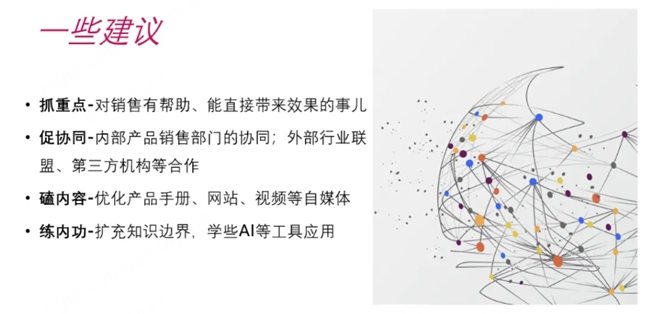 抓重点:现在大家都比较短视,每一个公司都在砍预算,都想要高的ROI,所以我们也要做一些有短期价值的事,就是找商机、线索,做一些真正能够帮助销售获客、让客户更加活跃的事。