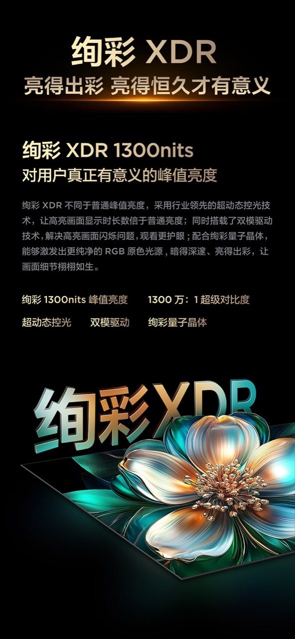 然后就是亮度方面,TCL T6L Pro最高拥有绚彩XDR 1300nits,不仅亮度色彩更佳,画面亮得更真实,暗得更深邃。看动作大片里的爆炸场景,强光部分不会过曝,暗部的细节也能保留,视觉冲击力十足,而且通过加入超动态控光技术,让高亮度可以长时间稳定输出,观影体验瞬间提升一个档次。