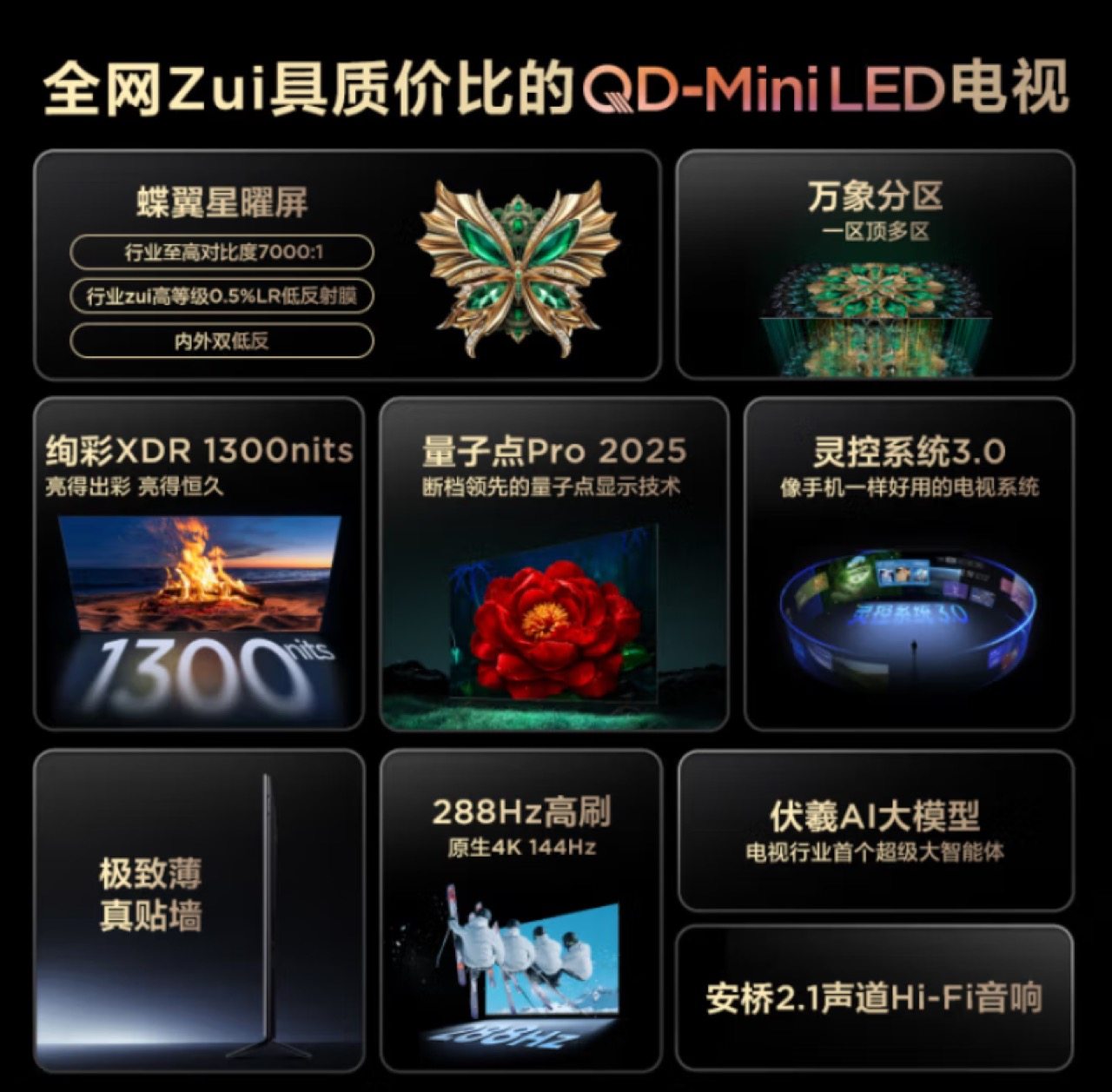 显然,当前市场已进入技术可感知化竞争阶段,Mini LED技术、抗反射涂层等原本高端机型专属的配置,正通过技术创新和产业链协同创新加速普惠化。以TCL为代表的电视头部企业,凭借行业唯一自有屏厂的优势,通过TCL华星自主产业链,在面板模组、光学材料等关键环节实现成本重构,为技术下沉提供可能。