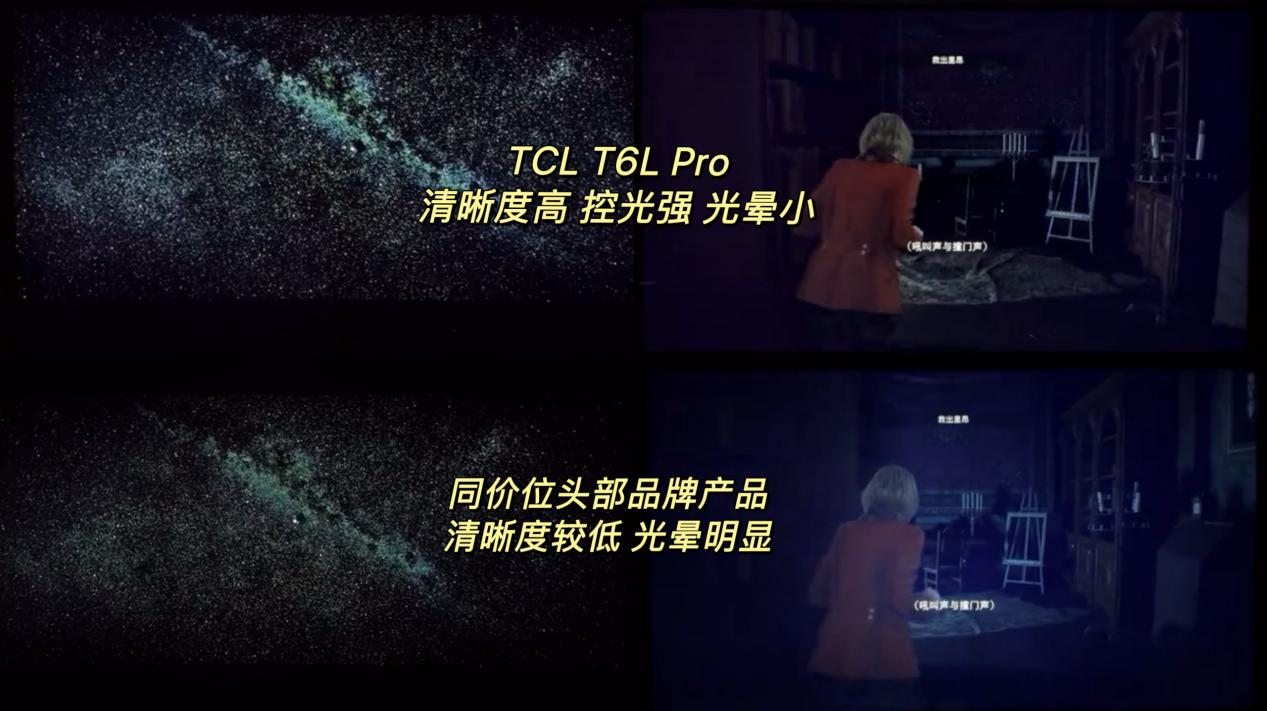 当然清晰的画质背后还有前沿的控光技术加持,拥有至高420个万象分区,由于不同于普通分区,TCL对分区的全链路7大技术都做了升级,一个万象分区的控光实力就能顶几个普通分区,因此,实际上T6L Pro可以迸发出超过800级普通分区的画质效果。比方说,有专业博主也用T6L Pro对比过分区数相近,但采用的是普通分区技术的同价位电视画质表现,可以看到,T6L Pro这边无论是清晰度亦或是色彩都吊打对家。