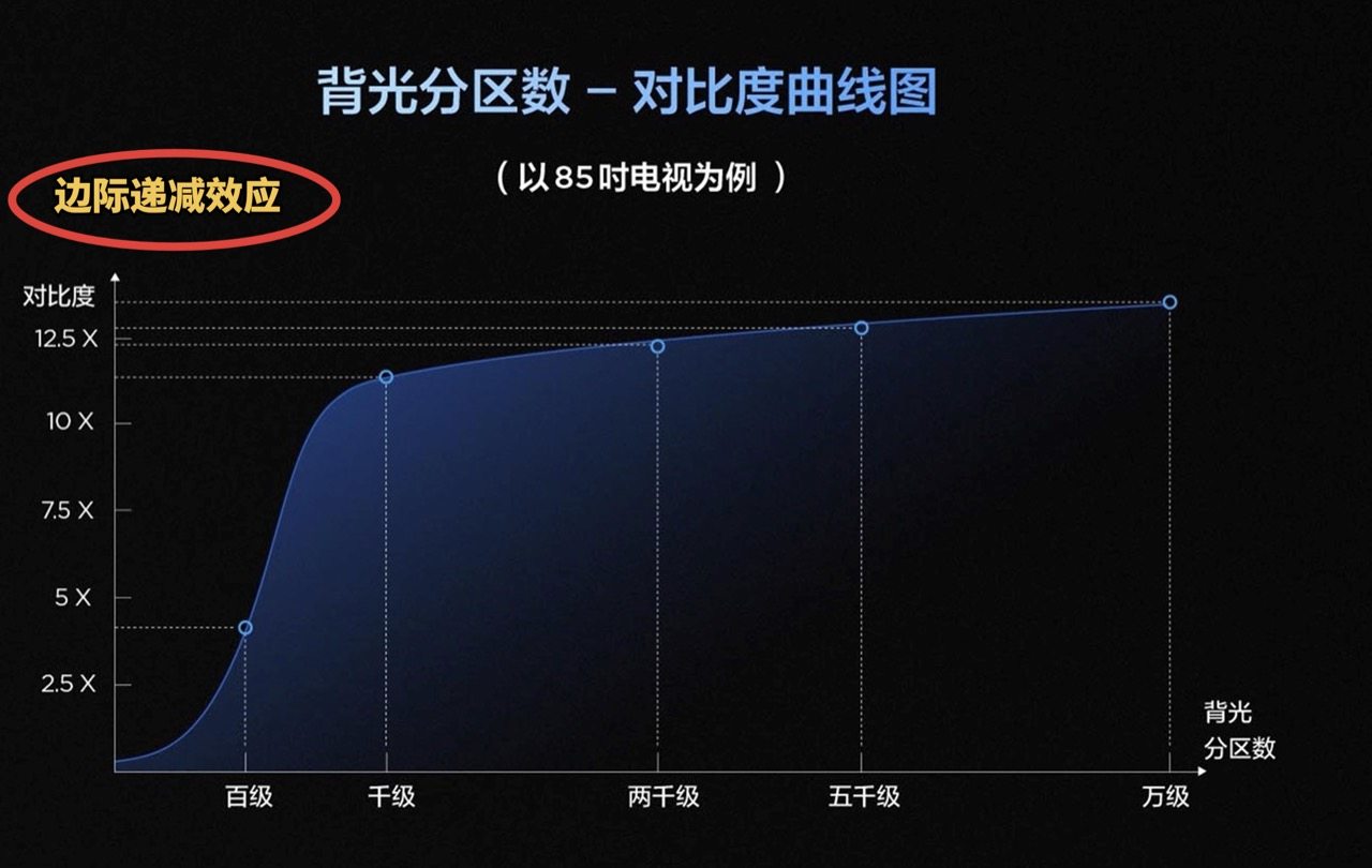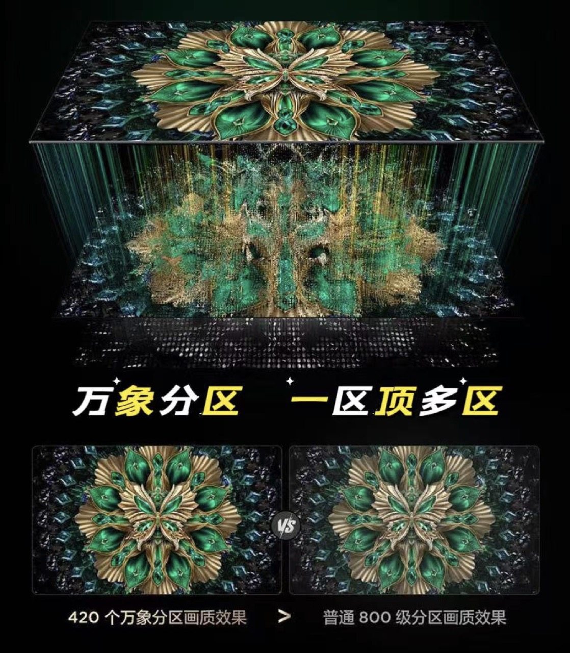 除了屏幕,背光分区是影响电视画质的另一重要因素。但懂行的都清楚,普通分区随着参数的提升容易出现“边际递减效应”,对画质的提升不明显,还容易出现光晕等问题。所以单看分区数是不够全面的,还要看各个分区实际上有没有尽心尽力去发挥最佳性能。