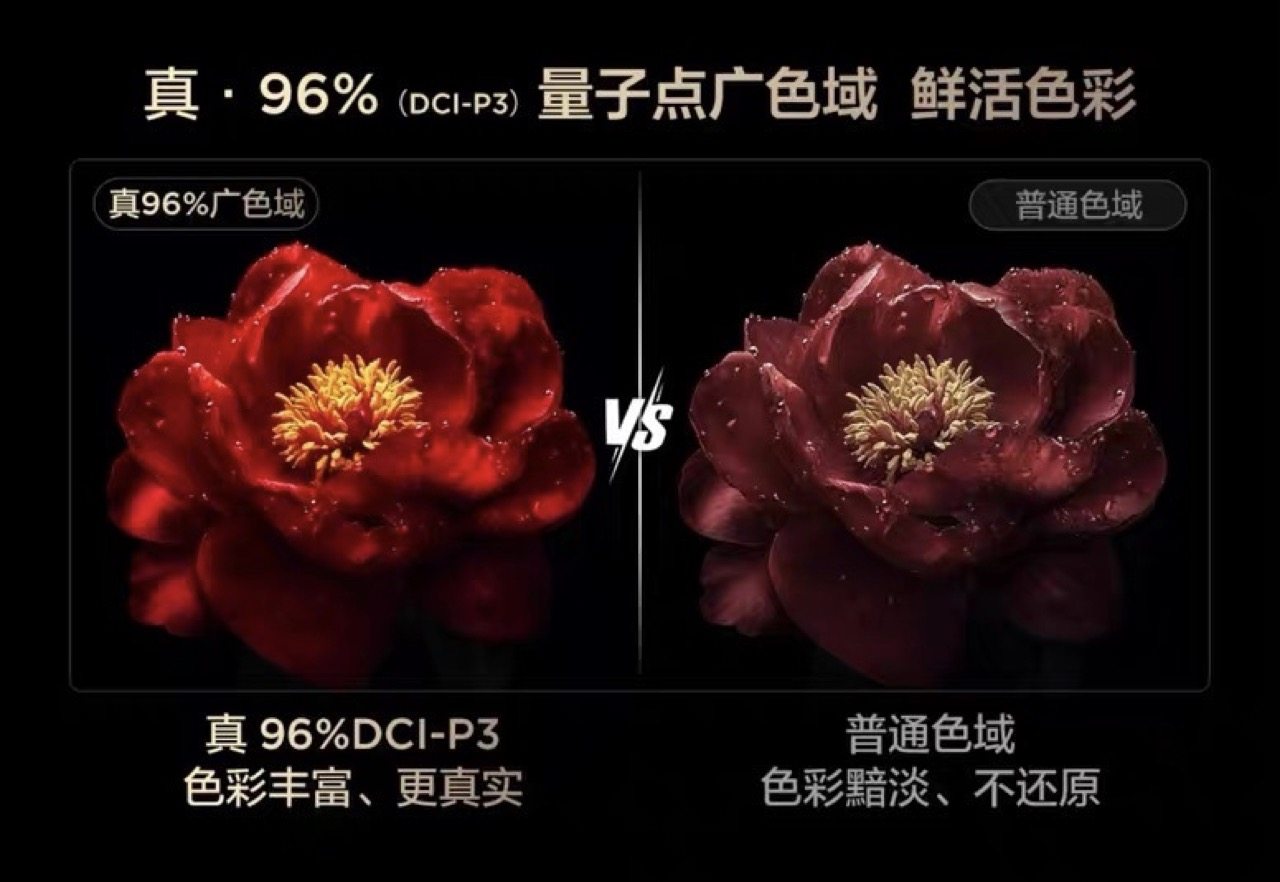 接下来看色彩表现,TCL T6L Pro 全尺寸都是96%DCI-P3色域值,这是因为TCL T6L Pro 搭载了量子点Pro 2025方案。它不仅升级了材料和色彩算法,实现实打实的真·96%DCI-P3超高色域值,让画面色彩特别生动、还原度超高,而且用的绚彩量子晶体材质,色彩寿命长达10万小时都不褪色!