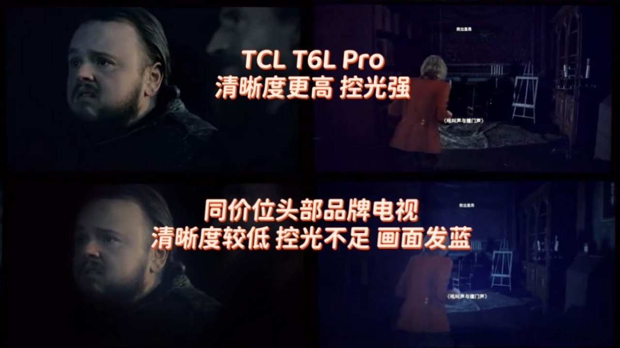 作为普通消费者,技术参数这玩意还是有点抽象,简单说:该亮的地方炸裂,该暗的地方纯黑,彻底告别"灰蒙蒙"!至于是不是真的可以做到“一区顶多区”,可以看到某博主的这个对比画面,接近的百级分区数量,但T6L Pro这边的字幕边缘非常清晰没有光晕,而另外一款则有明显的光晕,TCL在控光这块可以说是行业独一档的存在。