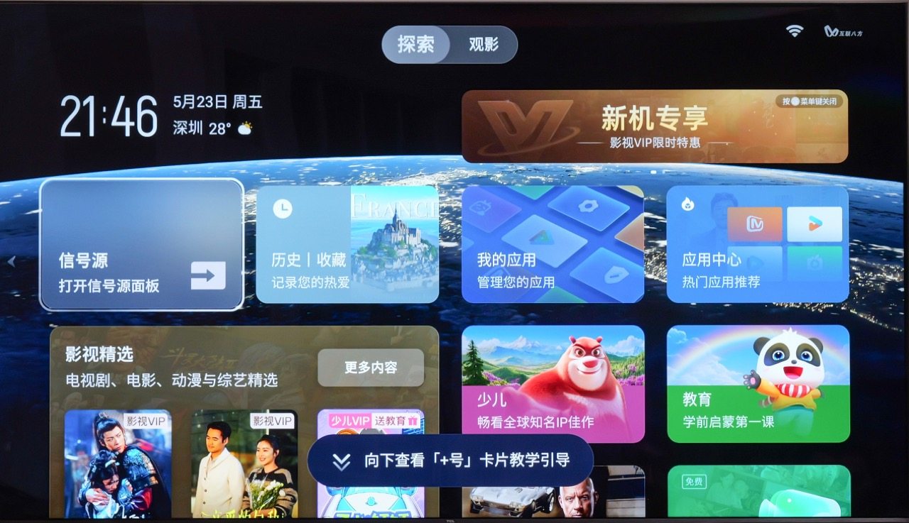 全靠它搭载的灵控系统3.0,并且一人一桌面这个梦想也终于在T6L Pro上得以实现。官方提供了超过300+的灵动卡片可以供你自定义桌面,比如我是个剧迷,那么我就会在我的首页最显眼的地方加上热门影视精选卡片,开机就能马上找到最新大片入口,别提多方面。
