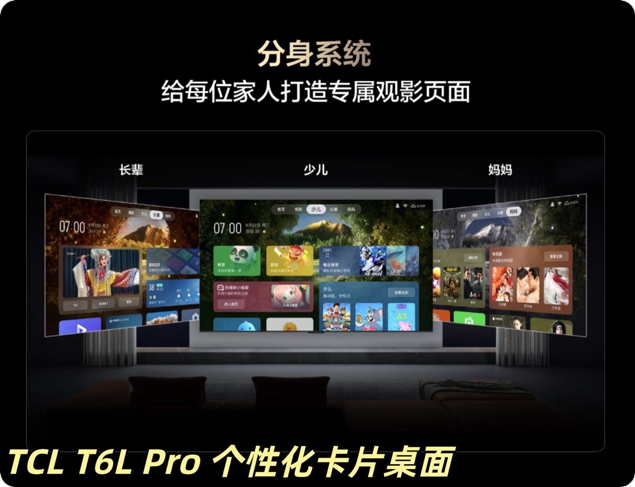 第三个黑科技是它的操作系统,T6L Pro搭载的灵控系统3.0,改变了我对电视的固有印象,以前的老电视交互逻辑很古板,每个功能版块的位置非常固定,想进入一个版块必须按照菜单逻辑一步一步来。但灵控系统3.0带来了全新的体验,它不仅无开机广告,还支持0.7s极速启动,再加上支持300+灵动卡片的自定义桌面,让它的个性化直接拉满,我针对家人的喜好分别给他们设置了专属桌面,他们都非常满意。对我个人而言,它的全场景刮削就是我最爱的功能,之前讲过在旧电视上,想看NAS里面的剧必须得等到开机完后,切换信号源才可以,但在T6L Pro这里它支持自动刮削NAS内的高清资源,并生成海报墙、匹配字幕,让我一点即可享受高清影视,不夸张地说,这个体验你只要试过就会彻底爱上。