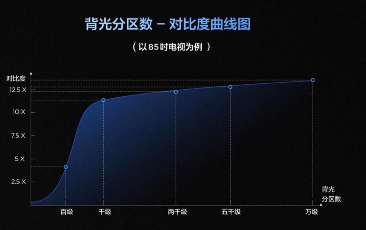 除了对比度,买电视看分区,也是大家选购电视的一个常识!但分区数量不光看数量,更要看质量,虽然Mini LED电视能够通过提高分区数来提高画质表现,但实际上,背光分区数增加到一定程度时,画质提升存在边际递减效应,且分区越多,单区控光面积越小,控光要求越精细,对光晕控制的核心技术要求也越高,否则画面容易出现光晕,暗场细节糊成一片。所以,买电视千万不能光看到高分区就盲目入手,擦亮眼睛看看有没有应用先进的控光技术。
