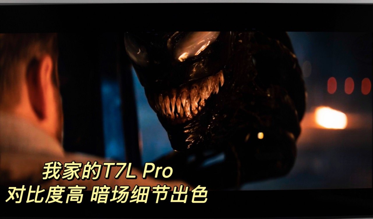 先说说这最直观的画面体验吧,T7L Pro搭载的这块蝶翼星曜屏真不是吹的。别人家的电视遇到暗场画面得吃力的“脑补剧情”,而我家这台电视遇到暗场画面反而来到了“舒适区”。