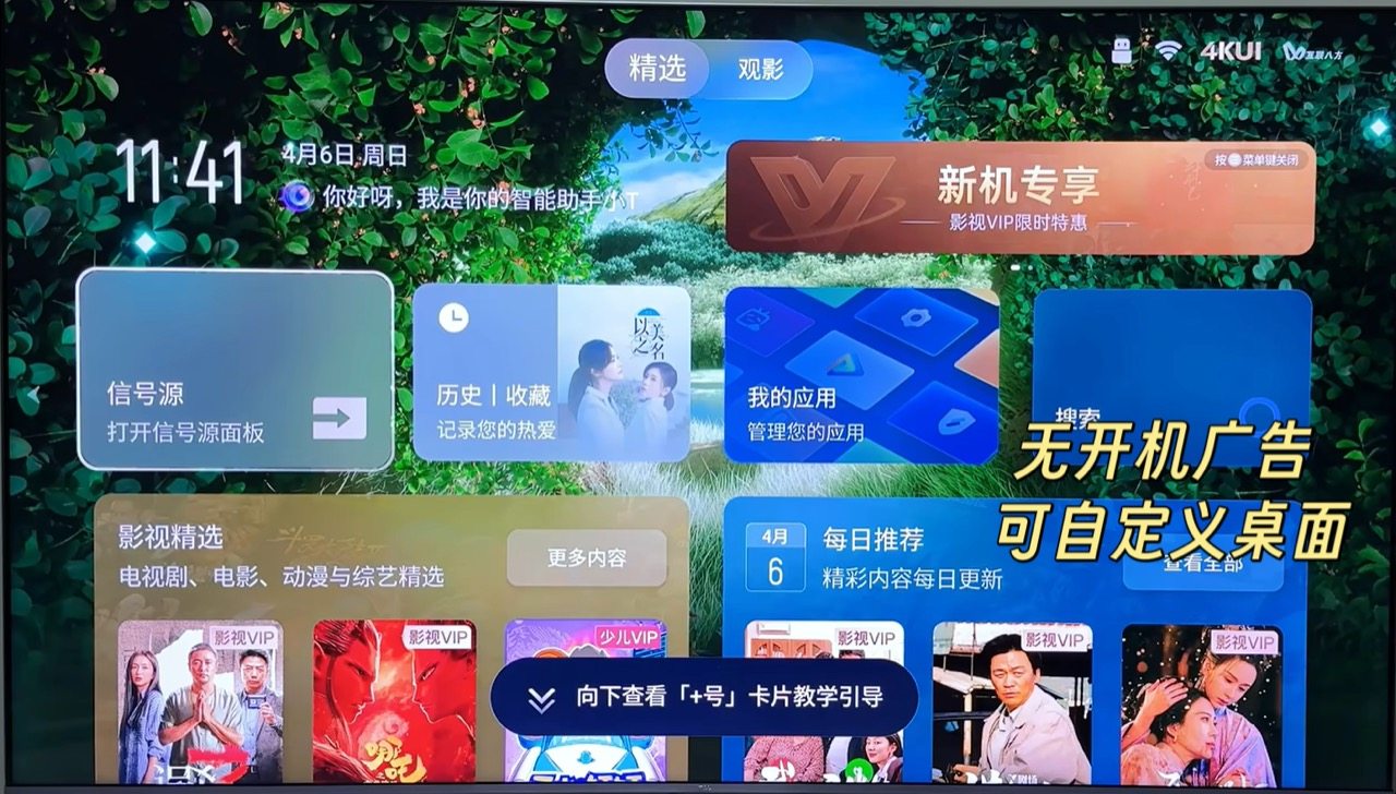 最后聊聊灵控系统3.0,人性化程度高到我惊艳!新增了4K UI和4K壁纸,操作界面简洁时尚、流畅得很,重点是没有开机广告,而且可以支持高度自定义桌面,提供了高达300+灵动卡片,可以随心摆放设置出专属桌面。