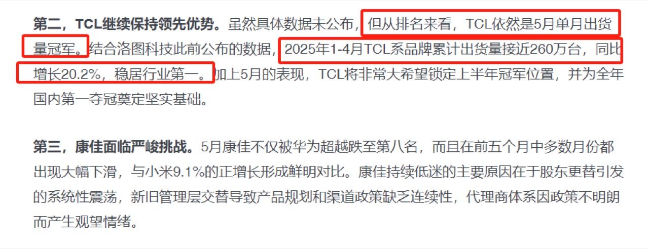 最后跟打算换电视的朋友提个醒,买电视别只看价格和配置堆多高,最核心的还是屏幕素质。再一个,大品牌靠谱也很重要。像TCL今年1-4月已经卖了快260万台,直接稳坐行业第一。机构还预测5月还是第一,买它真不容易踩雷。现在不少地方的国补优惠都开始撤了,趁着还有活动,真的是早买早享受。