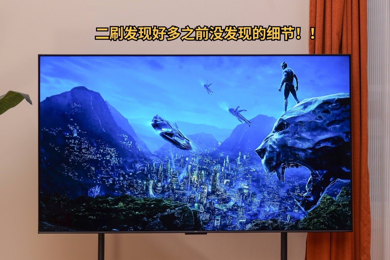 我就有点好奇,电视是靠的啥反光,明明之前那台旧电视也不便宜,但是反光就这么严重呢?我上网搜了搜一些大V的科普,发现原来现在电视主流的抗反策略分两派:一类是“磨砂屏+低反膜”,虽然很大程度上可以抵抗反光,但磨砂屏的材质原因,压制了屏幕本身的亮度和对比度,灯光一强吧,就容易发灰、偏白,暗场细节就会有所损失。另一类是“镜面屏+低反膜”,既能控制反光,又保留画面的清晰度和通透感,过去一般用在高端旗舰上。