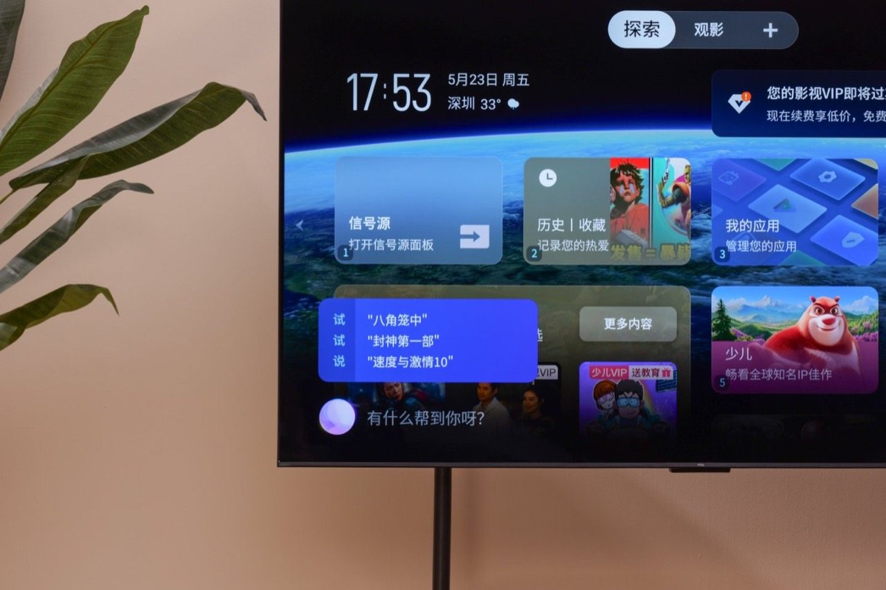 操作上也是非常顺心,灵控系统没有开机广告,日常操作响应很快,不管是打开应用、切换界面,还是投屏、遥控操作,几乎没有延迟感。而且还能语音操作,遥控器还有三颗自定义键,对老人非常友好。