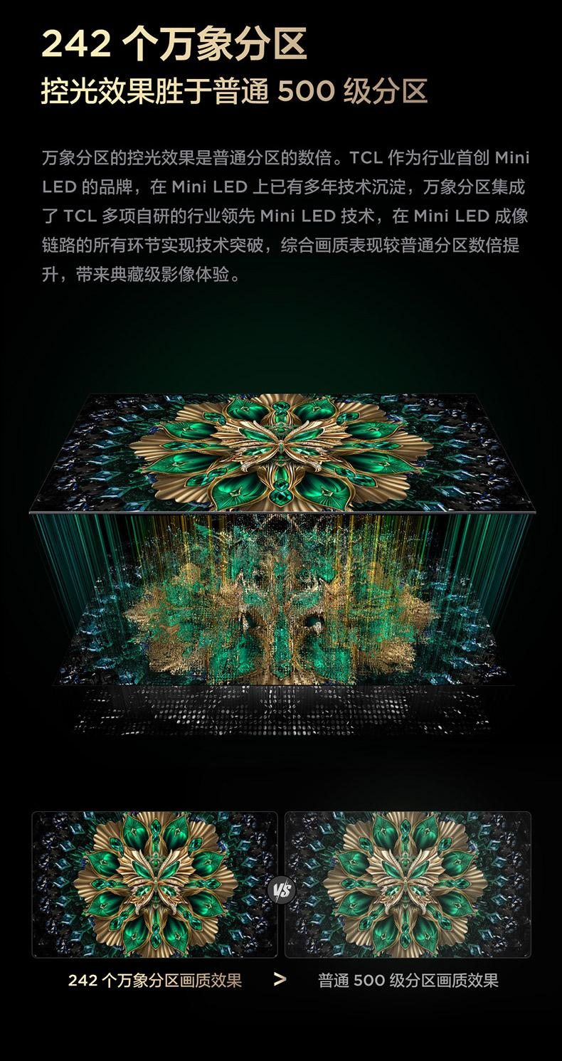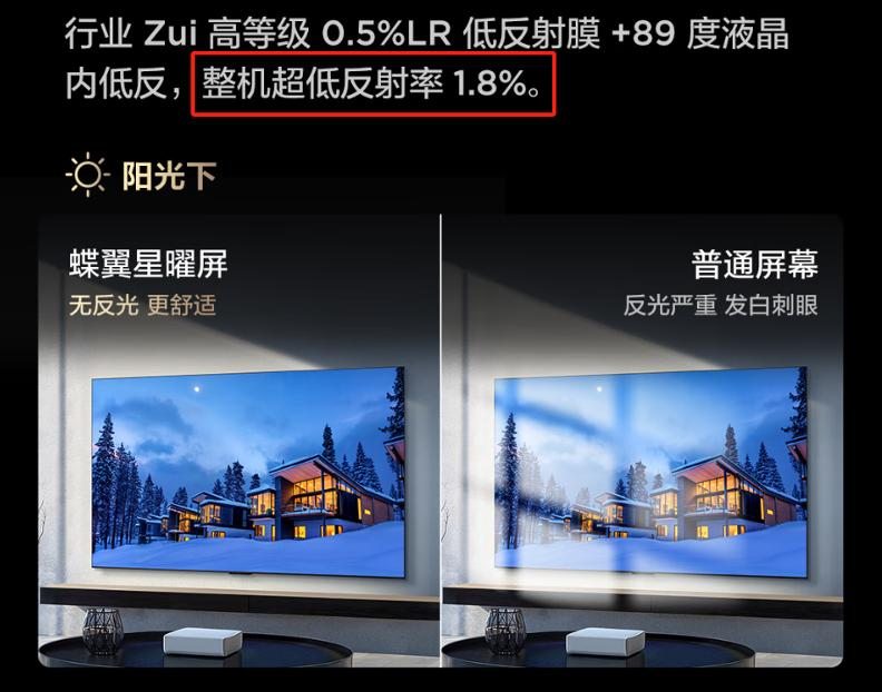 首先没有对比就没有伤害。之前我家的电视,白天窗帘要是我不拉,根本就没法看。到晚上开了客厅的灯,也是当“镜子”一样看。这种情况让我一个月都没开过几次电视。而这台TCL T6L Pro完美解决了我这一痛点。我买之前就看到官方宣传的这是配备了过去万元旗舰级电视才有的“蝶翼星曜屏“,这可是Mini LED电视的顶配屏幕,采用了镜面+低反膜的主流抗反方案,与三星那些上万元的高端电视技术同源。