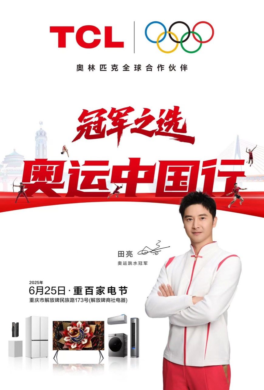 值得一提的是, 奥运跳水冠军田亮将亲临现场,与观众现场合影互动、分发签名,并体验多款智能家电产品,还将进行AI健身、乒乓球挑战赛等运动,以运动员视角诠释TCL产品在家庭娱乐与智能健身场景的多元应用,为家电节注入更多体育活力。这也契合TCL今年初正式成为奥林匹克全球合作伙伴的重要节点,未来TCL将在电视、空调、冰箱、洗衣机等核心领域,为奥林匹克赛事提供技术支持与创新产品,向全球用户传递“中国智造”的魅力与担当。