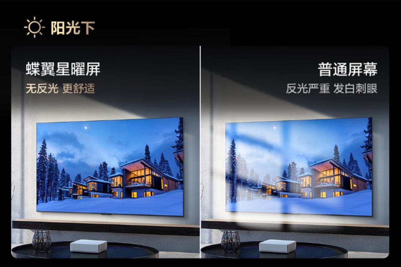 当时在朋友家是大白天,太阳光这么强,看的还是这种80%都是暗场景的片子,但是画面也没有明显的反光,细节都看得蛮清楚。一问我才知道,这电视反射率才1.8%,而且是镜面+低反,才有这种清晰通透的感觉,不会雾蒙蒙的。我看了下85寸的海信那款,反射率都2.2%了,说实话,当时就有点犹豫倒戈了。