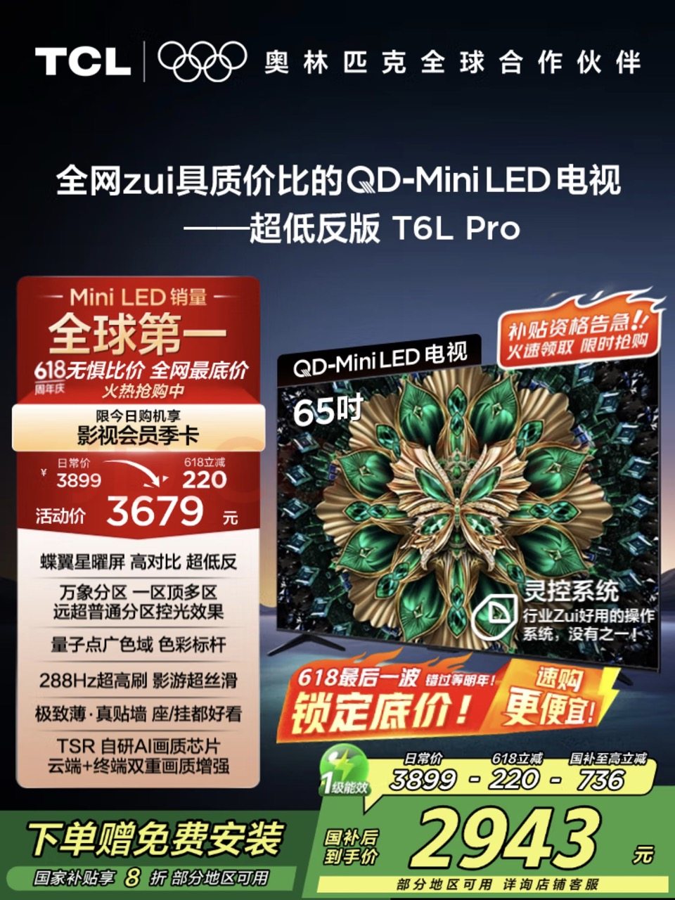 这么一对比各位是不是就清晰了,抗反光不是智商税,兼顾画质清晰度的需求也都不是刁难,核心是需要选对屏幕。于是在众多产品评测里,立马下单了一位技术评测博主推荐的TCL家的热销新品T6L Pro,原因很简单,用上了镜面+低反屏方案的蝶翼星曜屏,不仅抗反而且画质清晰,重点是它质价比超高,旗舰级的屏幕体验直接千元就拿下,我入手的时候国补+618福利85吋的超大屏也才5千左右,如果你不需要这么大,那么65吋入手价不到3千也是香得不行,今天就来给大家反馈一下我的使用感受。