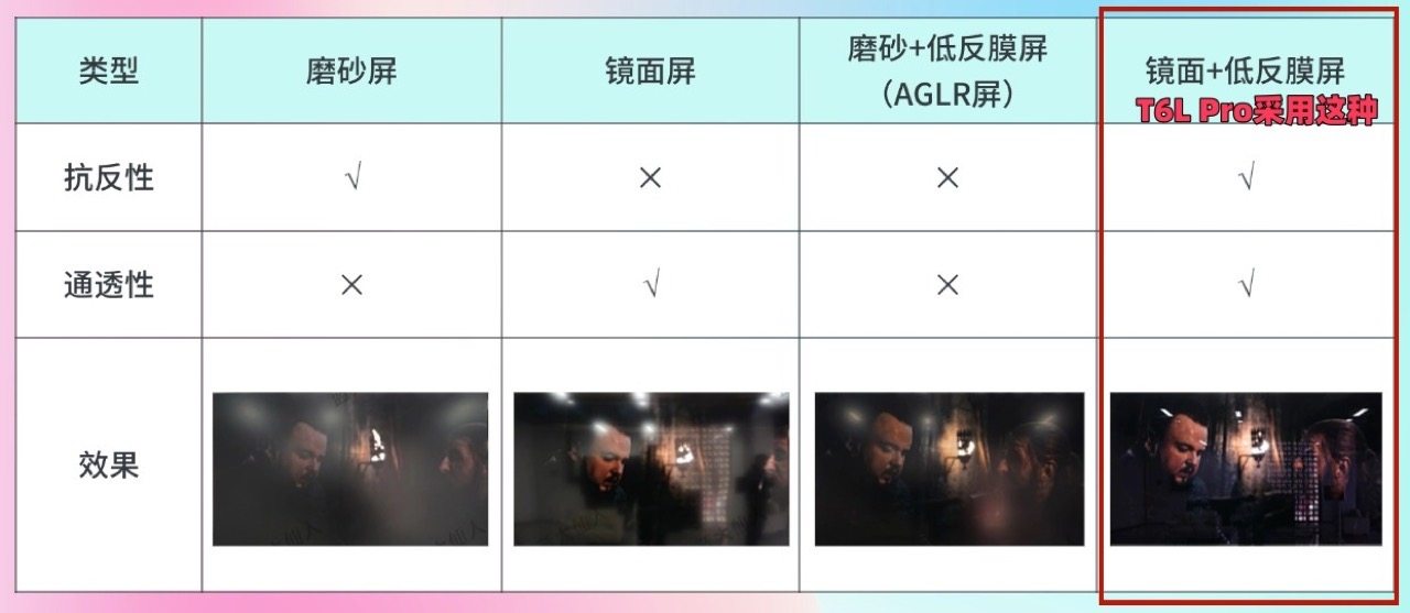 然而,只有屏幕出彩还不足以打动我,要知道,反光问题是头等烦恼啊。大白天想看电视,结果屏幕上全是窗户倒影,模模糊糊,看着直闹心。T6L Pro针对这一痛点直接放大招,采用与三星那些万元机同源的镜面低反屏的主流抗反方案,还配备目前行业最高等级的0.5% LR低反膜,再结合89度液晶低反层设计,有效降低环境光干扰,将整机反射率压至1.8%。相较于普通磨砂屏或AGLR屏,它还避免了画面泛白、光斑等问题,堪称解决反光难题的绝佳选择,这也是我毫不犹豫买下它的一大原因。