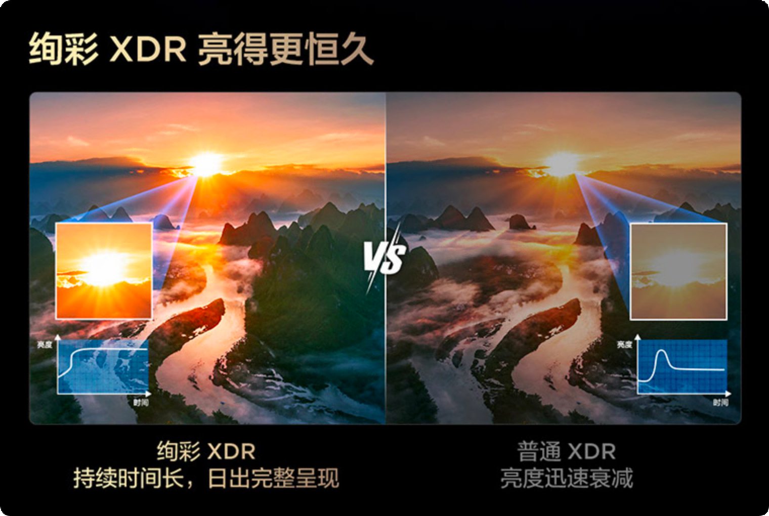 同时T6L Pro还配备了绚彩XDR峰值亮度技术,相较于市面上其他友商的瞬时峰值亮度,T6L Pro通过超动态控光技术,可以在高亮场景提供长时间的持续高亮度,解决了过往普通峰值亮度转瞬即逝的短板,给人以完美画质体验。