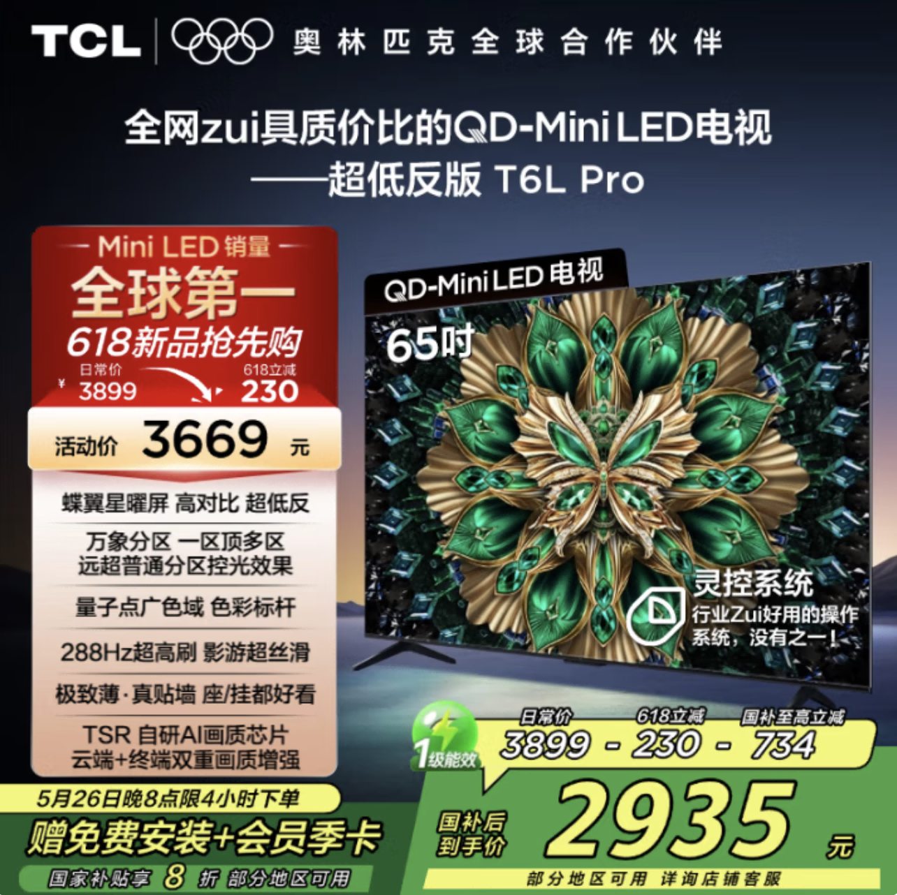 在消费者更加清醒的当下,产品力是销量的最根本支撑,品牌的技术创新和品质保障成为了核心竞争力。TCL通过不断优化用户体验, 推出了一系列满足不同层次需求的高端产品,以TCL今年推出的新品T6L Pro为例,其核心突破就在于将“蝶翼星曜屏、万象分区、量子点Pro 2025”等曾经的万元级配置下沉至3000元档,使其成为同价位段中极具竞争力的产品,同时也让消费者在同样预算前提下拥有了更优质的选择。