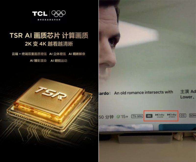 不过,我发现市面上主流电视的解码水平跟不上升级节奏,实际播放的内容分辨率远达不到4K标准,即便是旗舰级最高也只能支持1080P,影响观赛的激情与代入感。好在,部分技术派厂商就提前预料到了这一问题,TCL Q10L系列的出现,正是对这场“解码困局”的精准破局。作为国产电视的技术派代表,TCL通过深度适配主流平台的编码协议,自动识别影视赛事资源的最优规格,再加上行业首创的TSR AI画质芯片,通过云端+终端双重画质增强,无论是4K专区、杜比视界的电影,还是高帧率的赛事直播,都能以最匹配的分辨率和帧率呈现,带来更沉浸的观看体验。