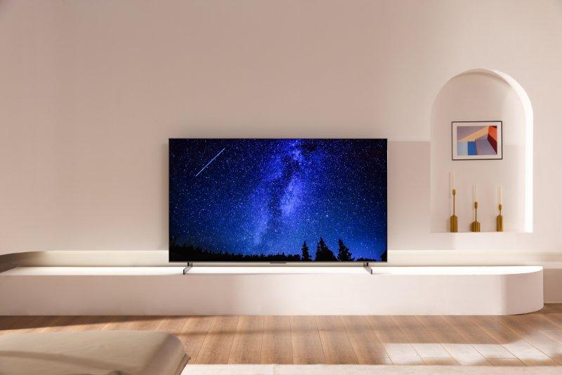 在外观设计上,该系列采用极景·无黑边设计,通过22项专利技术,将边框、屏幕与背光模组无缝整合,实现"无黑边、无缝隙、极窄边框"的“真全面屏”效果,可视面积接近100%。这一设计彻底解决了传统电视屏幕黑边和边框带来的视觉割裂感,使电视能够完美融入各种家居环境,成为兼具科技感与艺术感的"隐形"装饰品。