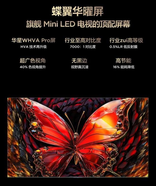 Q10L的“登顶”并非偶然,作为TCL多年的显示技术积累的集大成之作,它从屏幕、控光到外观,都做到了行业领先水平,将“极致画质”从概念落地为可感知的体验。其核心竞争力首先源于蝶翼华曜屏的搭载,这是块来自TCL华星的HVA顶配屏幕,拥有惊人的7000:1原生对比度,远超普通IPS屏【1200:1】5倍以上,这意味着Q10L能够在暗场场景下拥有更纯净的黑色,同时也能保留更多的亮部细节。同时,屏幕上覆盖的一层行业领先的0.5%LR低反膜,将整屏反射率压低至1.8%,让Q10L的用户即使在正午强光环境下观看,也不会看到泛白失真画面,彻底解决了传统电视“反光”的痛点。