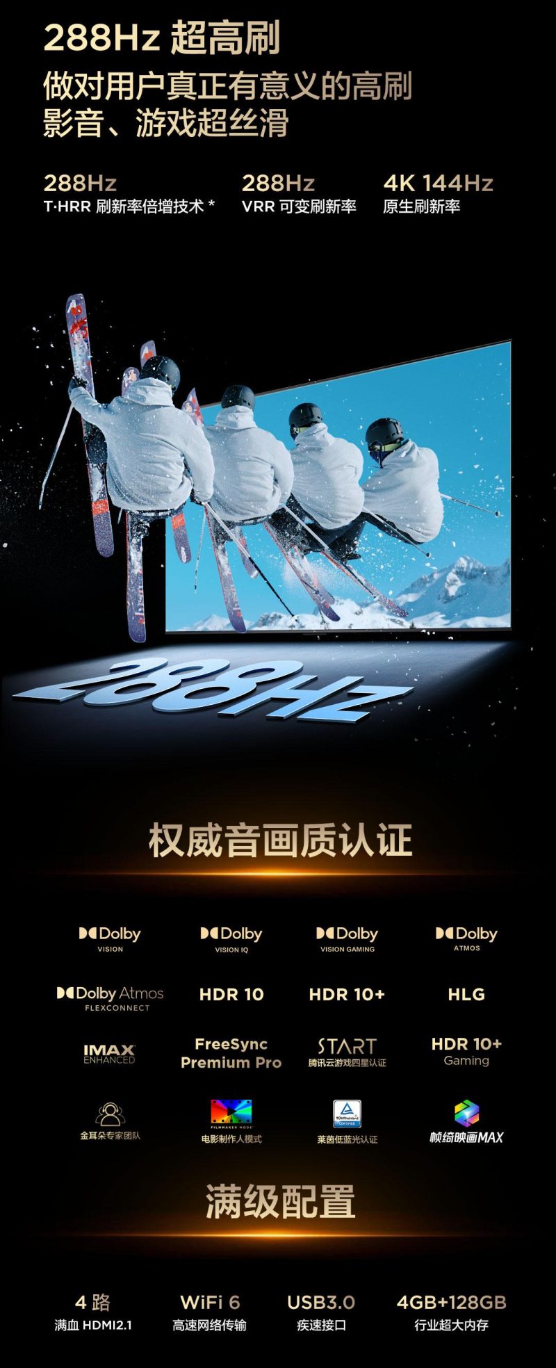 对动作类游戏来说,流畅度更是刚需,若画面跟不上操作节奏,很容易错过关键指令。TCL T7L Ultra的 288Hz高刷新率,配合4路满血HDMI2.1接口与WiFi6网络技术,能有效避免画面卡顿、拖影,哪怕是长时间连续战斗,操作与画面也能保持零延迟同步,让玩家的每一次操作都精准落地。此外,它还是腾讯云游戏四星认证产品,无需下载安装,联网就能直接畅玩多款热门游戏,省去了大容量安装包的等待时间。