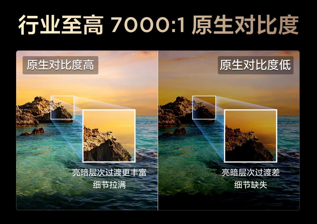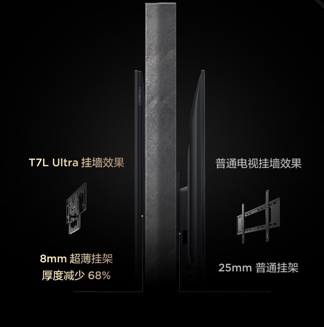 屏幕是决定电视画面对比度与观影体验的核心。TCL精准把握这一关键,为 T7L Ultra配备了华星高阶HVA屏——蝶翼星曜屏。其对比度高达7000:1,是普通IPS屏(1200:1)的5倍以上。这意味着在观看暗场场景丰富的科幻电影时,屏幕能呈现如墨般深邃的黑色,画面边缘锐利,细微细节得以精准还原。