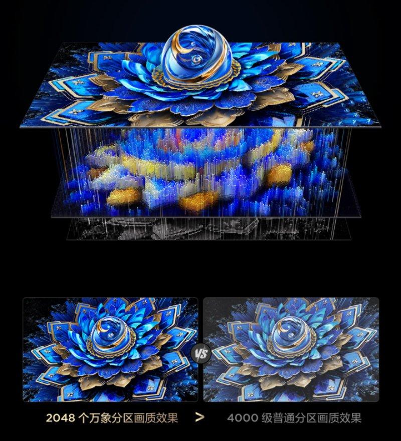 好屏幕需要强大的控光能力加持,才能充分释放画质潜力。T7L Ultra搭载的万象分区技术,从背光到成像,通过发光芯片、透镜技术、OD设计等7大环节底层技术优化,实现“一区顶多区”的超强控光效果。该机型至多搭载2048个万象分区,画质效果远超4000级普通分区电视。在播放星空场景时,星点的锐利感与夜空的深邃感可以同时被清晰呈现,画面细腻真实。