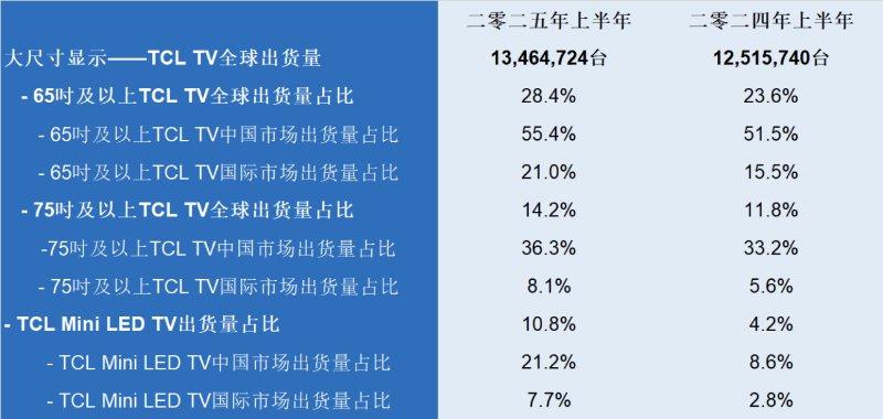 这种领先优势,在市场表现中得到了最为直观的印证。据最新市场数据显示,2025年上半年,TCL全球电视出货量达1346万台,同比增长7.6%,稳居全球前二。其中,在高端电视细分领域,TCL的Mini LED电视全球出货量同比暴涨176.1%,出货量位列全球第一,充分展现出其在高端电视市场的绝对主导实力。