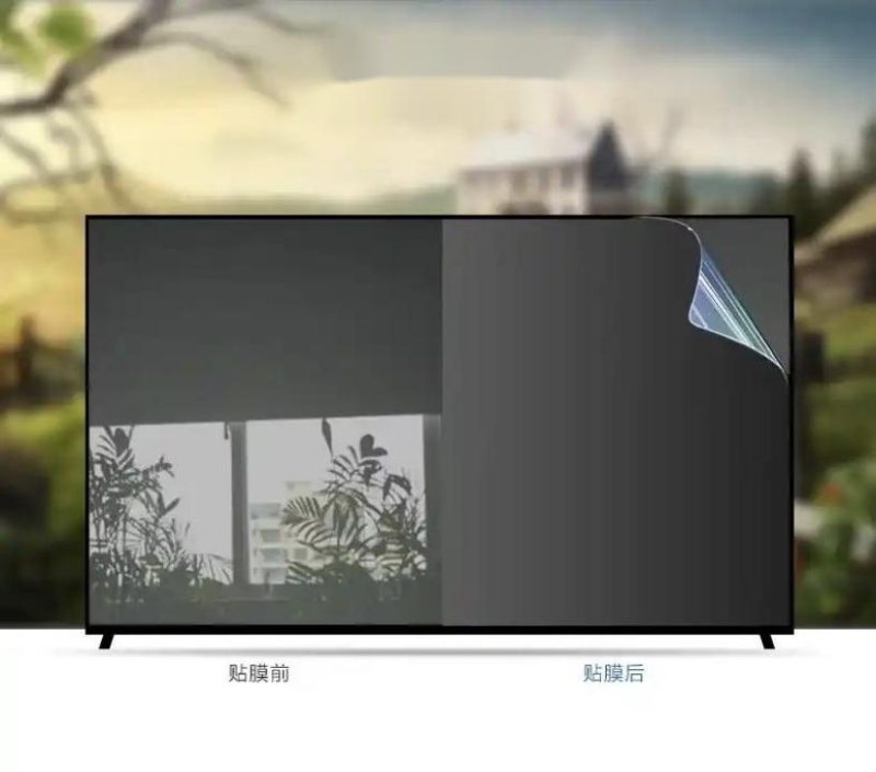 这时候,可能有人会说装遮光帘,但是窗帘主要挡得了白天的太阳光,晚上家里开灯、吊灯反出来的光,靠窗帘就不够看了;还有人试着给电视贴抗反光膜,原理跟手机膜差不多,贴上就能有效降低屏幕反射,但要注意,贴膜可能会影响画质,比如画面偏色、视角变差之类的,另外贴膜还是建议找专业人士操作,自己操作容易起泡、贴歪,确实要费不少的功夫。