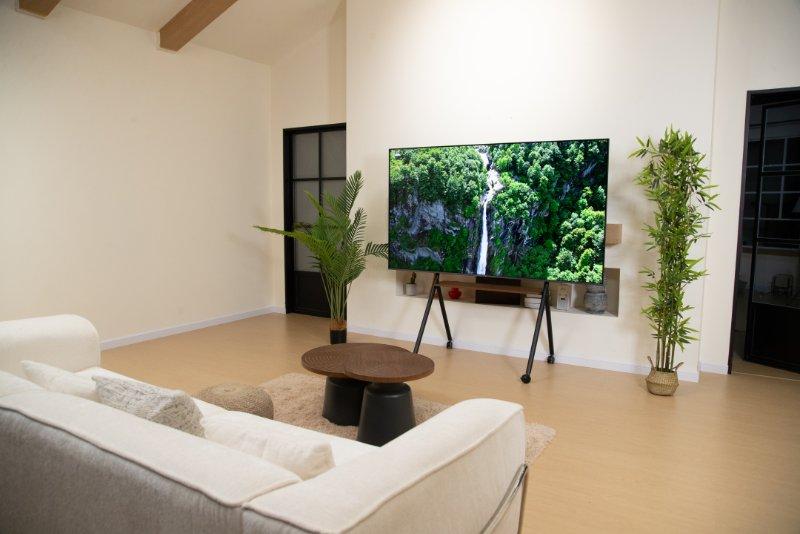 音响方面也没让人失望,它用的是有 70 多年历史的安桥 2.1.2 Hi-Fi 音响,还加了两个天空声道,看电影的时候,声音从四面八方过来,特别有环绕感,就像自己置身在剧情里。系统也好用,灵控系统 3.0 操作特别顺,开机只要 0.7 秒,还没有广告,省得每次等半天;还有 300 多个灵动卡片,想调什么功能直接点,我爸妈来家里用,教一遍就会了。外观也好看,机身薄得不到 60 毫米,比同价位的电视薄了 20% 还多,挂在大白墙上简直就是一幅艺术品,一点不占地方。