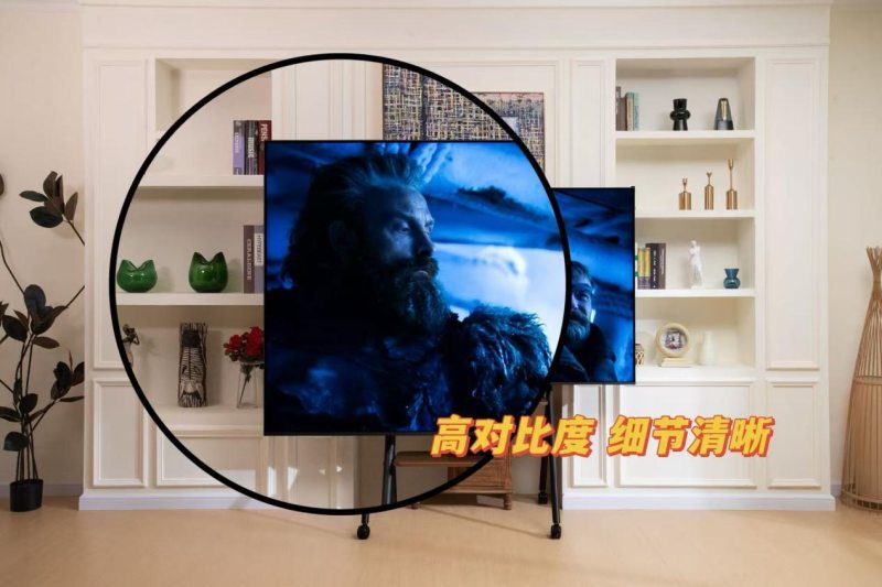 没有了反光的干扰,画质才能完整展现,画质方面主要关注两点:“对比度”和“控光分区”。“对比度”是决定画面明暗差异、基础层次与细节呈现能力的关键,而“控光分区”则精准控制局部明暗,有效避免过亮或者过暗的情况,接下来看看T7L Ultra在这两方面的表现。先说对比度吧,在这个价位的电视多采用普通IPS屏,原生对比度约1200:1,这是偏低的对比度,看《权力的游戏》这类暗场多的剧集时,夜晚场景里的城堡轮廓、人物服饰纹理全是“一团糊”,得反复回放才能看清伏笔。而TCL T7L Ultra的蝶翼星曜屏则拥有7000:1原生对比度,是普通IPS屏的5倍还多。暗场里的阴影层次、亮部的高光细节都能精准呈现,不用再为“看不清细节”费眼。
