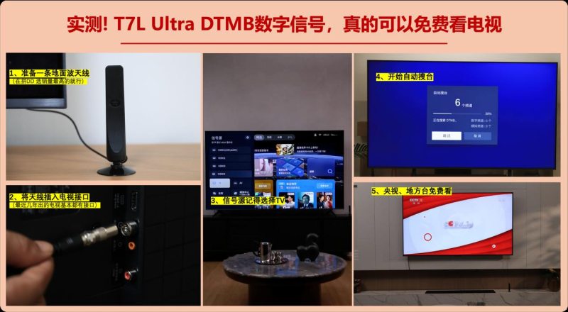 它的DTMB地面波数字信号接收功能也极具实用性。只需花一杯奶茶的钱买一根地面波天线,将其插入电视接口,再把信号源切换到TV模式,启动自动搜台后,就能免费观看央视、地方卫视等频道,既不用联网,也无需开通会员,每个月能省下不少会员费用。