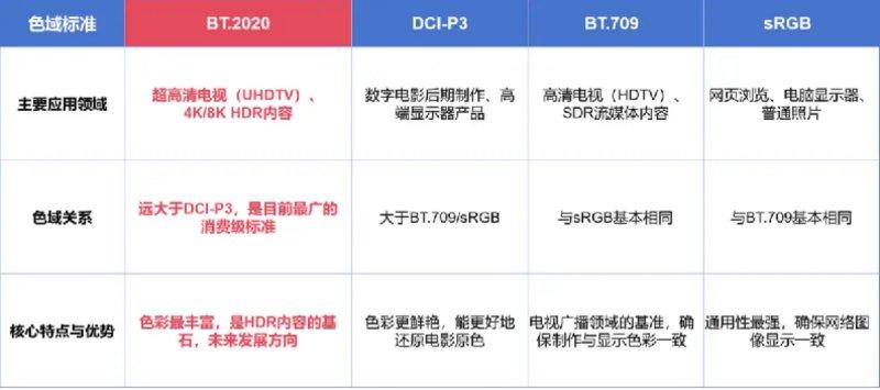 想要颜色看得舒服,核心在于匹配高标准的色域规范,而BT.2020色域标准正是目前色彩表现的“黄金准则”。作为覆盖范围最广的色域标准,它不仅适配4K/8K超高清分辨率,还能完美承接HDR技术的明暗细节,让屏幕显示的颜色无限贴近咱们肉眼看到的真实样子。