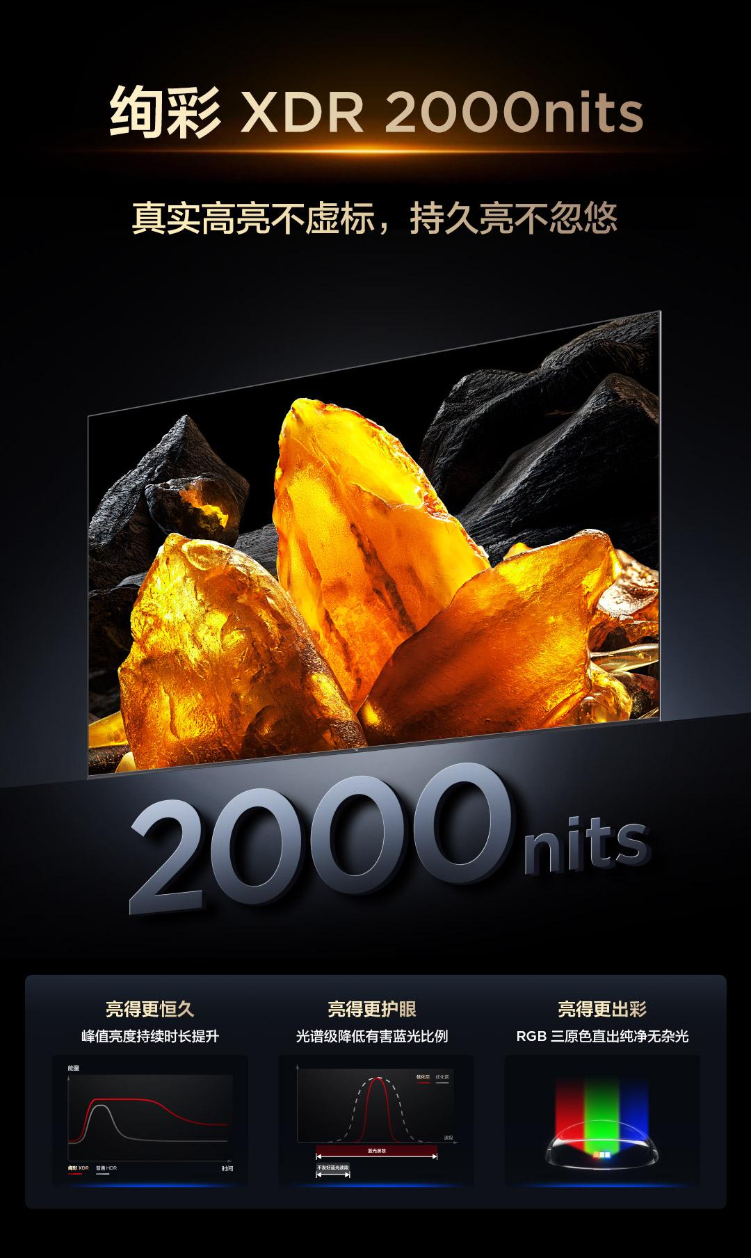此外,由于搭配了国际权威评测机构Rtings 认证的高分同款的蝶翼星曜屏(华星高阶 HVA 屏),TCL Q9M 在画质上的优势进一步拉大,不仅有7000:1 的原生对比度与内外双低反技术,绚彩XDR技术让其峰值亮度达到2000nits且不褪色,暗部细节纯净无杂光。从技术突破到体验落地,这款覆盖 65 至 98 英寸尺寸、售价 7999 元起的产品,真正实现了 “万元内买 RGB-Mini LED 电视” 的可能。
