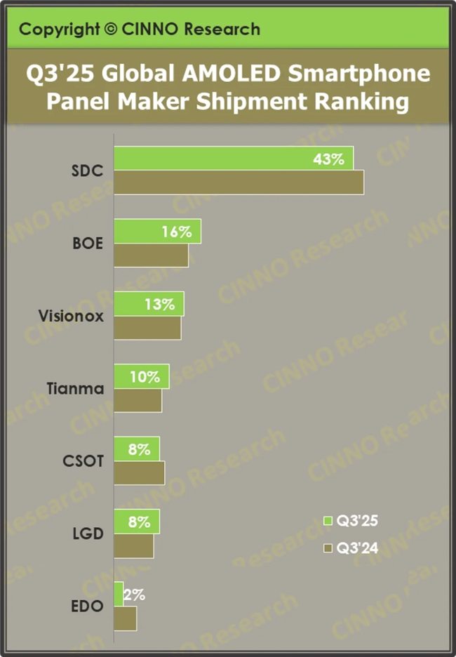 2025年第三季度,全球智能手机面板市场迎来重要转折。在AMOLED面板出货量同比增长11.7%、环比增长20.3%至2.5亿片的背景下,中国显示企业维信诺凭借16.7%的同比增速,以12.7%的全球市场份额跃居行业第三。这一突破不仅标志着企业自身的跨越式发展,更展现了中国显示产业在核心技术领域的全面突破。