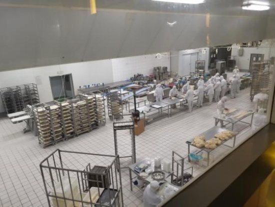 2021年3月31日,在营口圣士实业有限公司生产车间,工人们正在制作大麻花。新华社记者 李宇佳摄