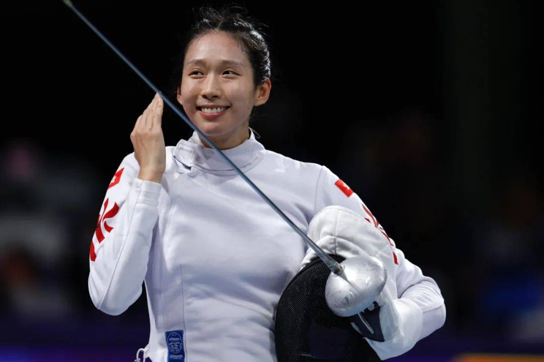 7月27日,江旻憓在比赛后。当日,在巴黎奥运会击剑女子个人重剑金牌赛中,中国香港选手江旻憓13比12战胜法国选手马洛-布雷东,夺得冠军。新华社记者 费茂华 摄