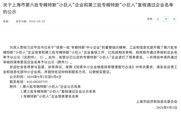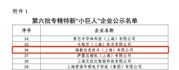 近日,工业和信息化部第六批专精特新“小巨人”企业培育名单正式发布,瑞数信息技术(上海)有限公司(简称瑞数信息)成功入选,荣获国家级专精特新“小巨人”企业称号!