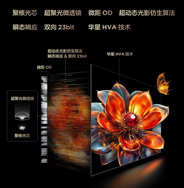 结合AI的结果以及目前TCL已经公布的信息,这次的新品还采用了来自TCL华星的蝶翼华曜屏,可称得上是Mini LED电视的顶配屏幕了。