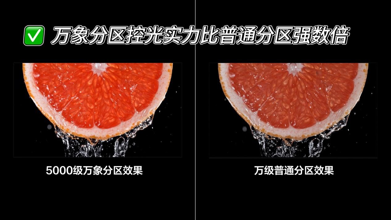 作为旗舰产品自然也少不了TCL自研的万象分区技术,去年年底刚推出的万象分区凭借比普通分区强数倍的控光效果,一推出就圈粉无数,这次TCL继续加buff,再次对发光芯片、透镜技术、OD技术、光影算法以及屏幕进行了升级,通过全链路、系统性的精准控光,千级万象分区更胜万级普通分区,画质呈现更加细腻、层次感更强。