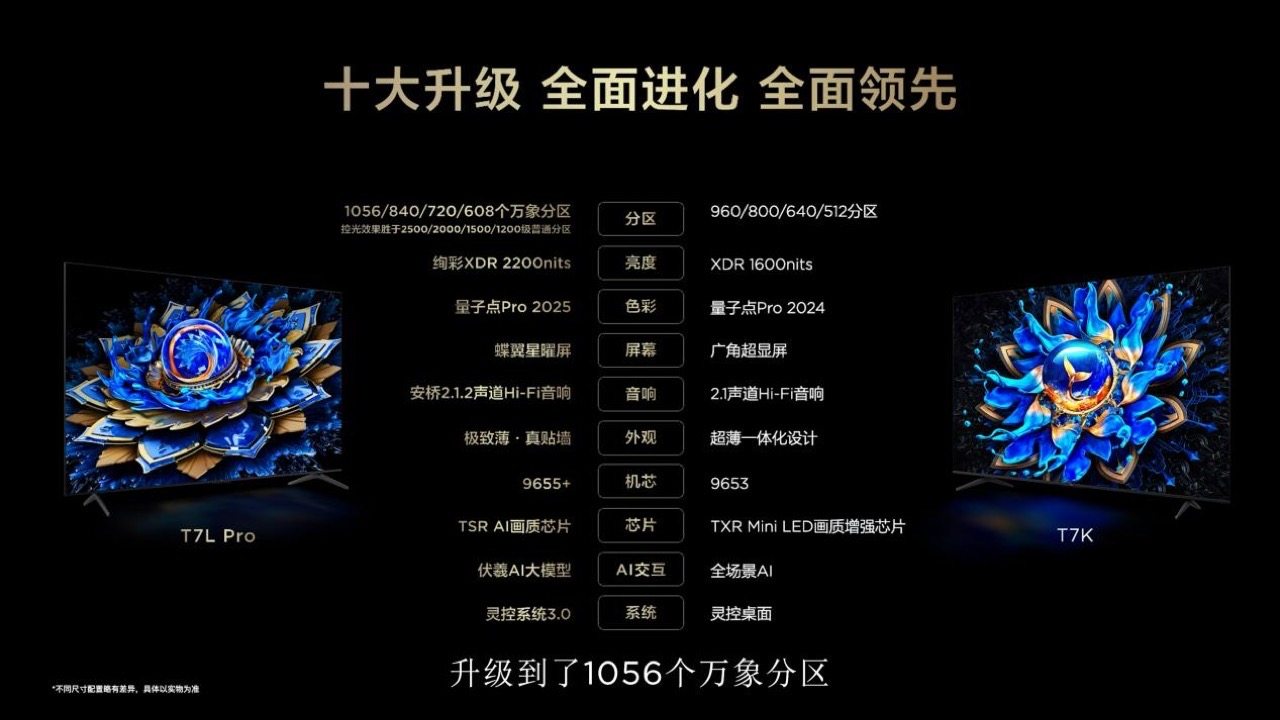 此次TCL推出的T7L系列和Q9L系列QD-Mini LED电视,实现了从屏幕、控光技术、色彩技术到音响以及外观设计的全方位升级。蝶翼星曜屏、万象分区控光、TSR AI画质芯片等原本仅应用于万元旗舰机型的专属技术,如今开始下放至主流产品区间,极大地提升了产品的质价比。